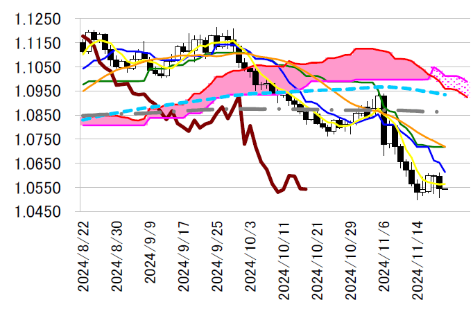 で水準を切り下げ、明日にも1.05 ドル後半まで低下が示唆