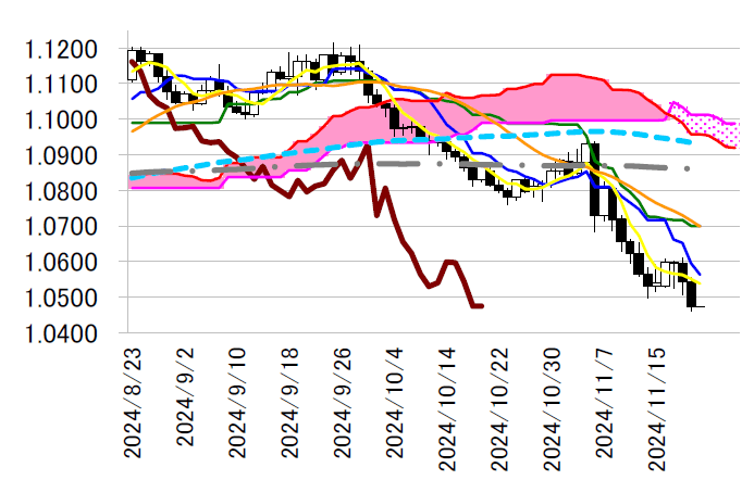 日足一目・転換線は1.0563 ドルまで大きく水準を切り下