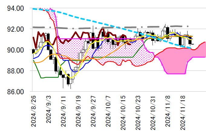 雲の上限は90 円付近に位置し、来週末にかけて90 円後半