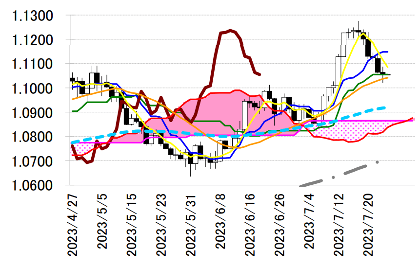 1.11 ドル半ばの転換線を超えるようなら手仕舞い。