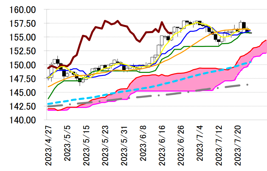 に。基本は戻り売りスタンスで臨み、156 円前半の転換線を