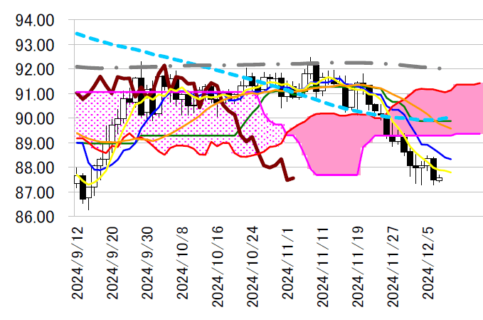 レジスタンス1 88.59(日足一目均衡表・転換線)