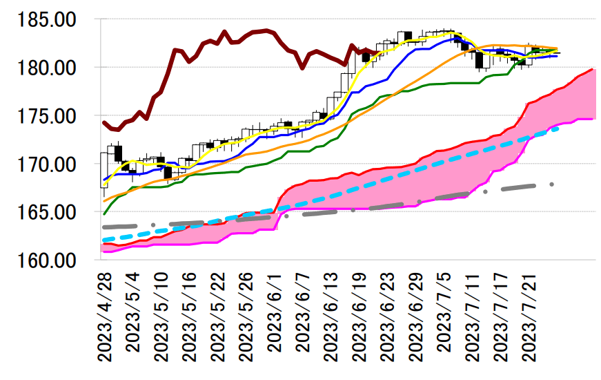 線を上回って引けており、反発の可能性が示唆されている。 本日は 181 円前半の転換線と後半の基準線を意識しながら