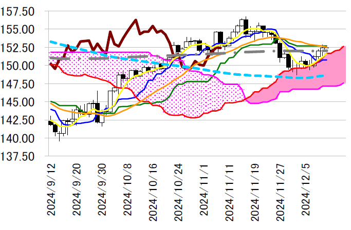 本日は200 日移動平均線152.03 円を念頭に置き、雲の上