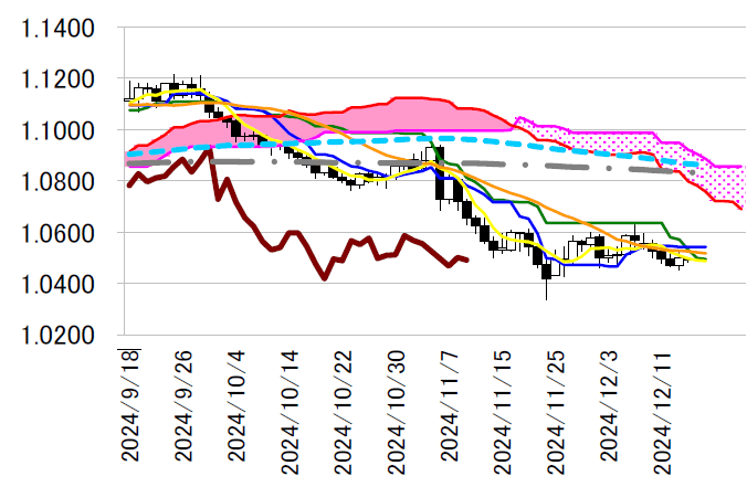 日足一目・基準線は1.05 ドル後半から1.0532 ドル付近ま