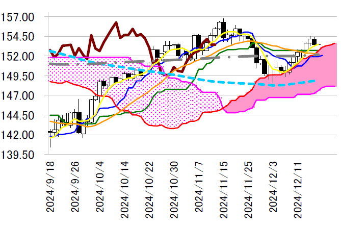 上向きの日足一目・雲の上限は152.60 円台、明日には153
