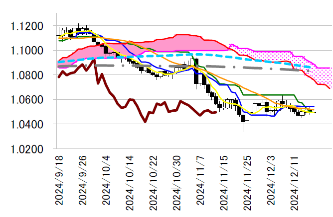 基準線は1.0490 ドル台で値をやや切り下げており、相場