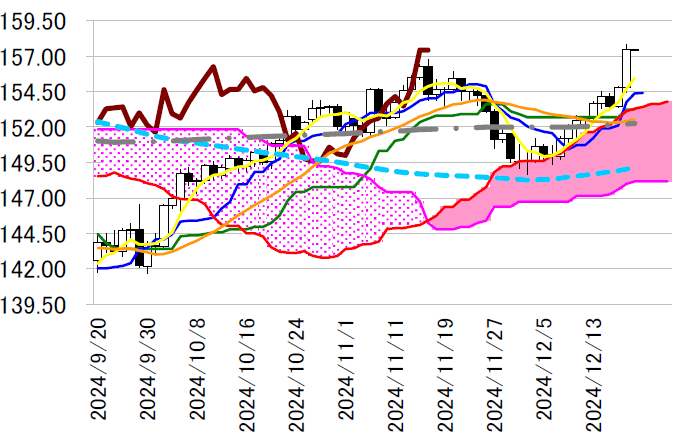 半の11 月高値水準を超えて7 月19 日以来の高値圏となる157