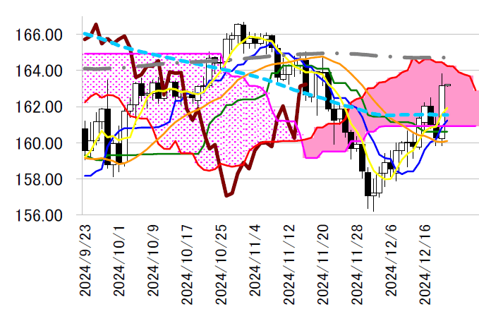 レジスタンス1 164.24(日足一目均衡表・雲の上限)