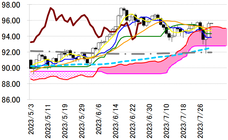 サポート 1 94.32(日足一目均衡表・基準線)