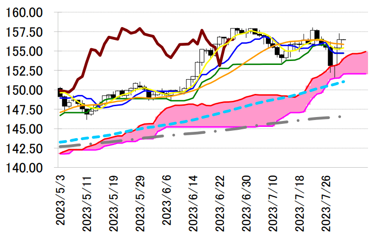 サポート 1 155.11(7/31 安値)
