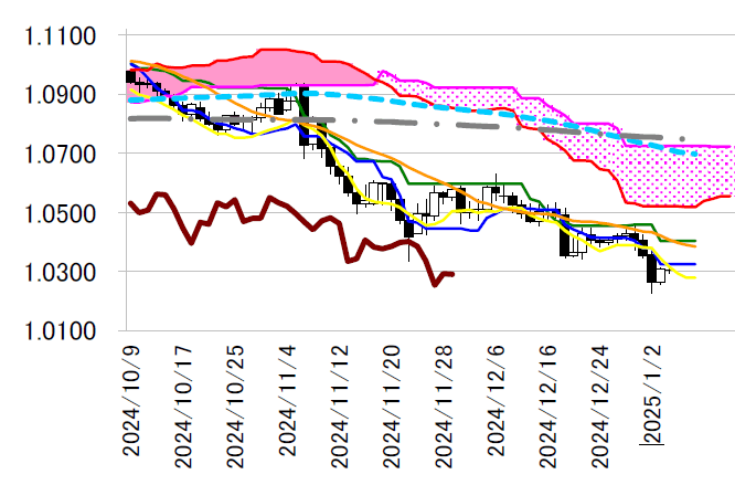 今年に入り日足一目・転換線は 1.0340 ドル台まで下落し、