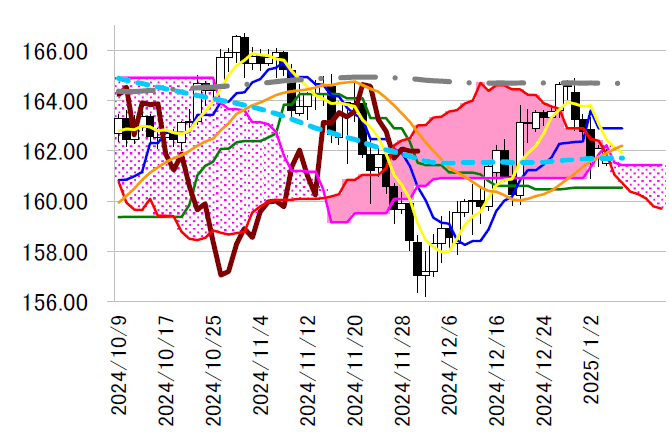 支持となれば、162 円後半の転換線や年初に頭を抑えられた