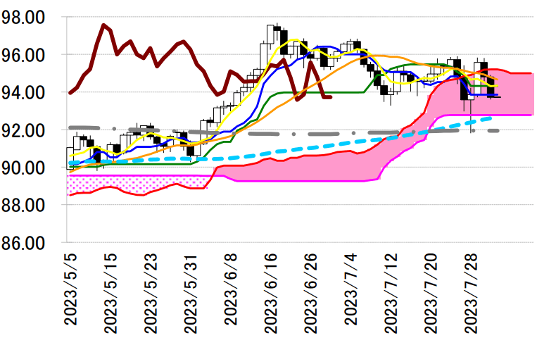 レジスタンス 1 94.32(日足一目均衡表・基準線)