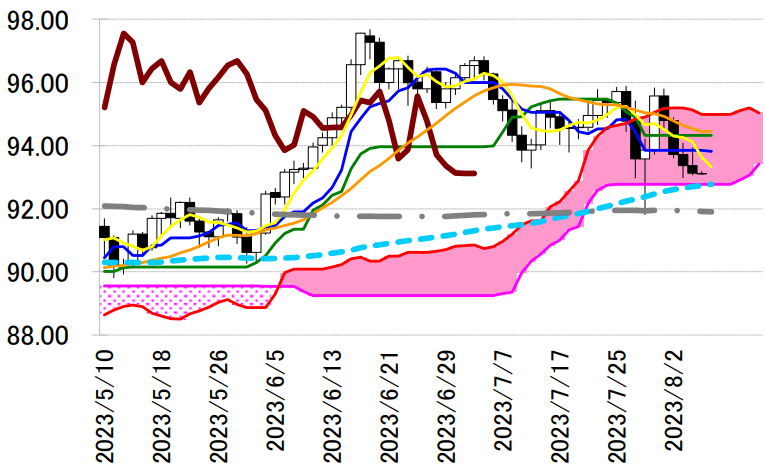 サポート 1 92.77(日足一目均衡表・雲の下限)