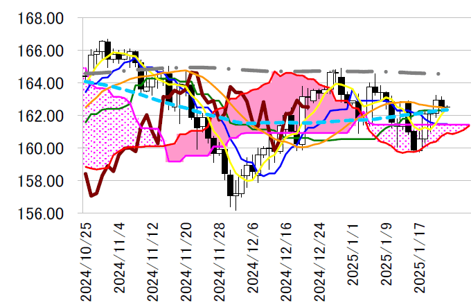 レジスタンス1 156.83(日足一目均衡表・基準線)