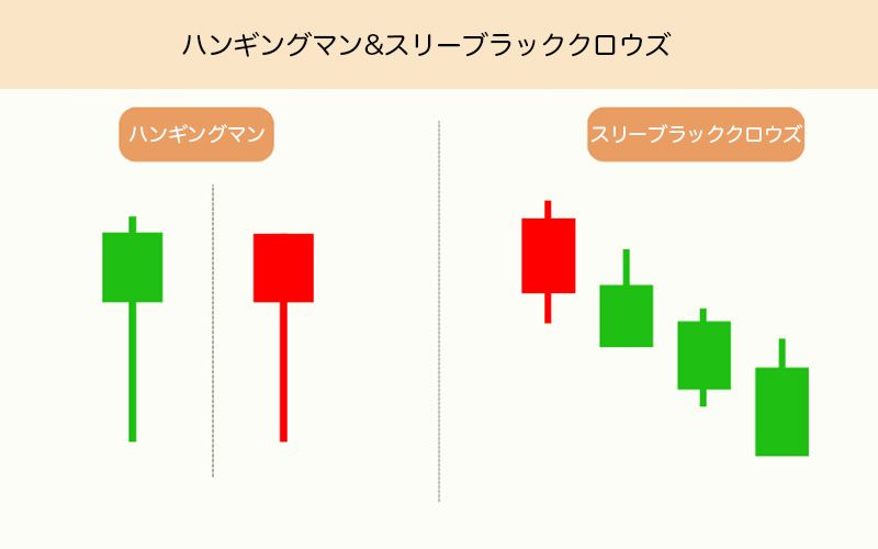 ハンギングマンとスリーブラッククロウズのローソク足パターンは、為替や株式市場における弱気トレンドの明確な警告シグナルを提供します。
