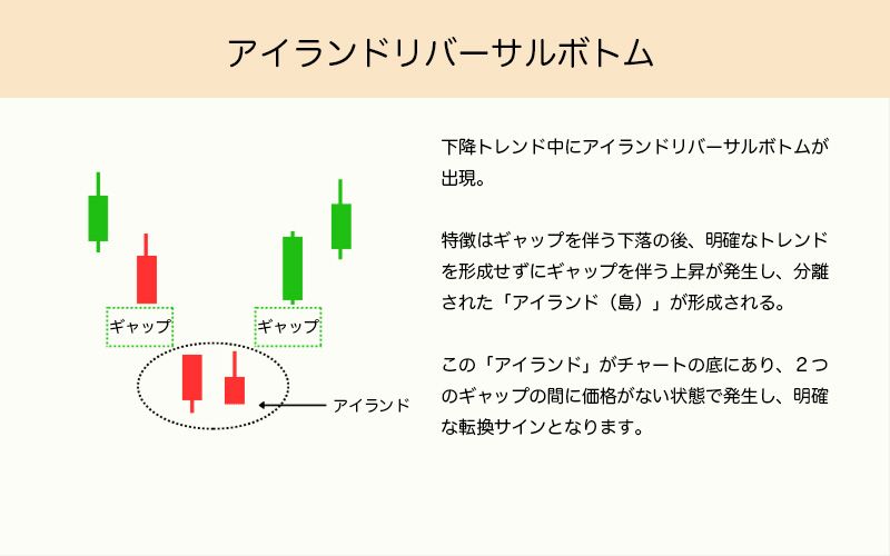 このパターンは、孤立した「島」のような形状からその名がつけられており、市場における重大なトレンド転換の兆しを示すことが多いです。