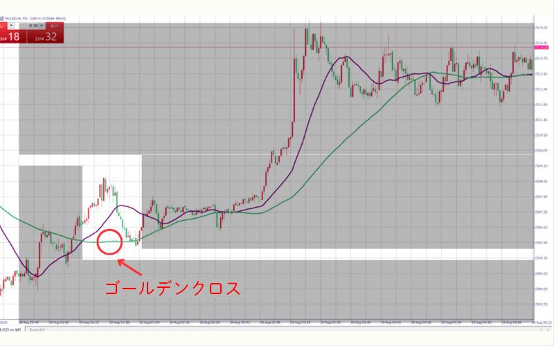 実際のチャートを用いてゴールデンクロスの例を解説します。