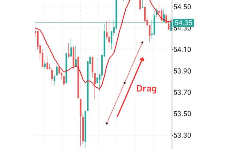 For horizontal or vertical lines, tap at the level you want to draw. For trend lines, tap at the starting point on the chart and drag to the endpoint to draw.
