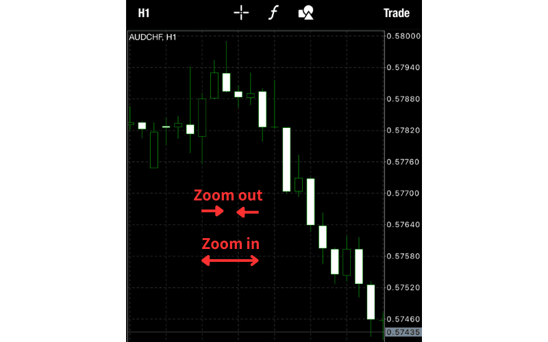 Zoom in and out on the chart using pinch out and pinch in gestures.