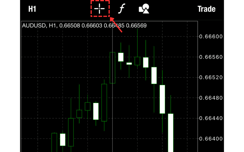 To switch the cursor to crosshair mode on the chart, tap the crosshair icon at the top of the screen.