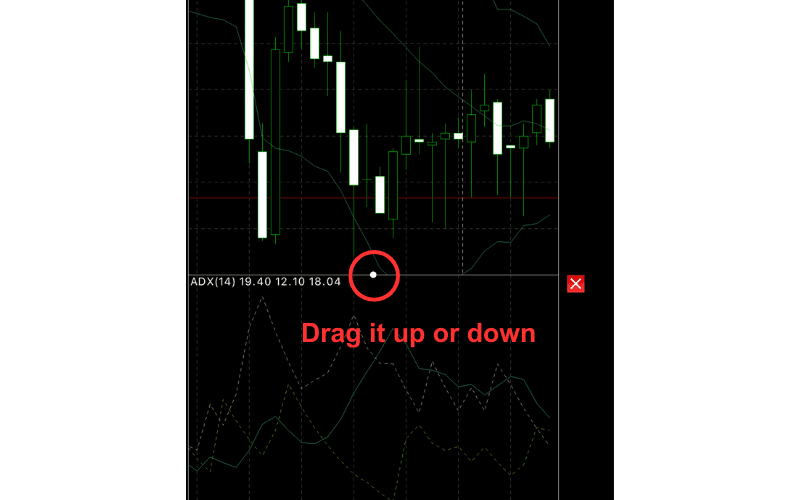 A white dot will appear on the boundary line between the main and indicator windows. Drag it up or down to adjust the display areas.