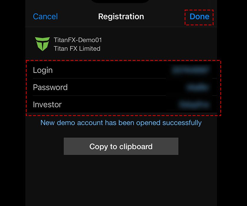 Click the "Done" button at the top right to complete the account creation and log in to your demo account.