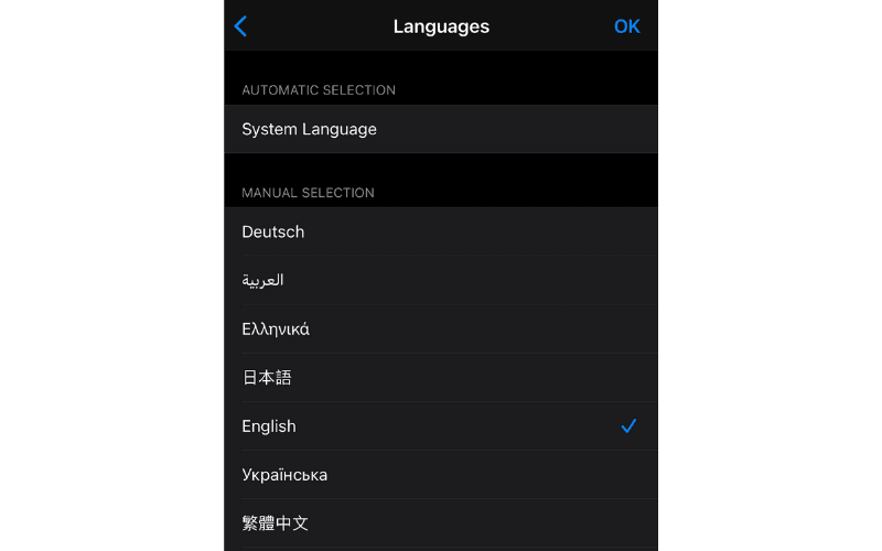 From the list of available languages, select the one you want to use. A message will prompt you to restart the app. After restarting, the language change will be complete.