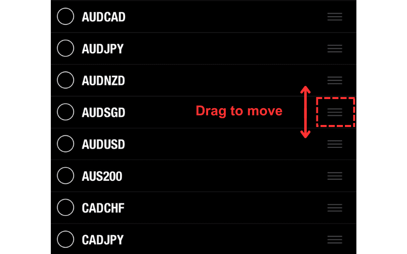 Tap the pen icon in the upper left corner, and then drag the icon on the right side of the symbol list up or down to change the display order.