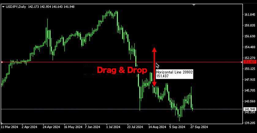 Double-click the drawn horizontal line and drag & drop to move it.