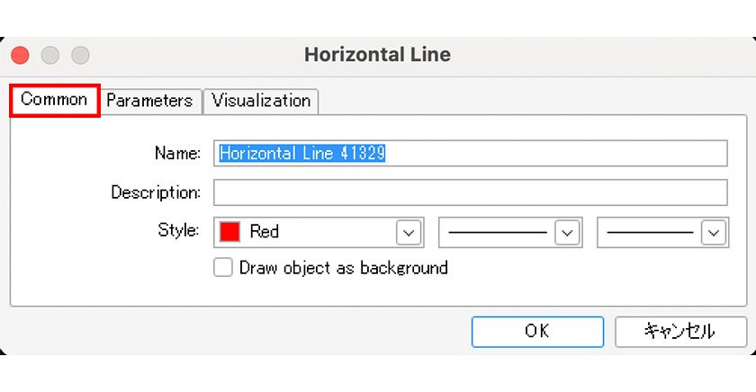 The "Common" tab allows you to specify the line's name, description, color, thickness, and type.