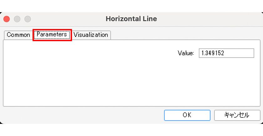 The "Parameters" tab allows you to specify the position of the horizontal line by price.