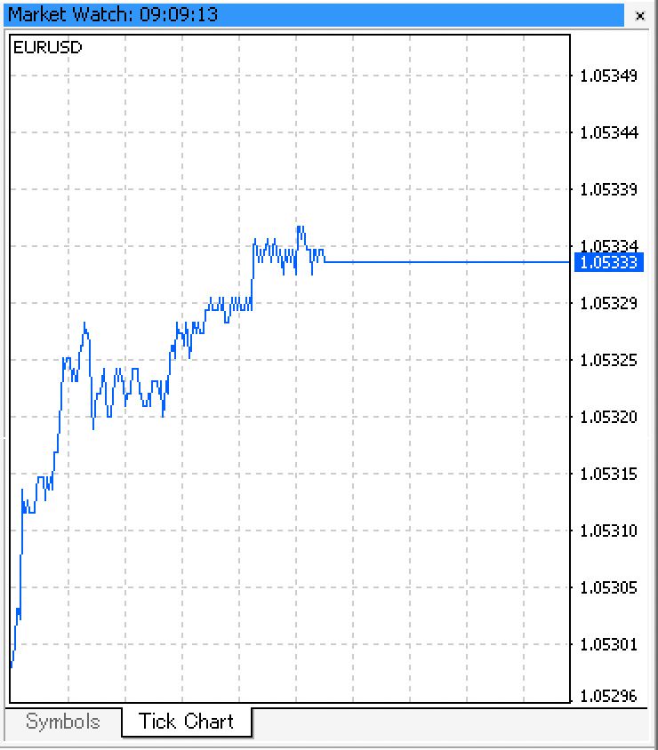 Displays a tick chart for the selected symbol, useful when you want to observe the most recent minute price movements.