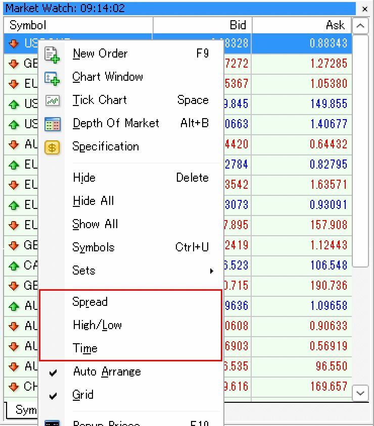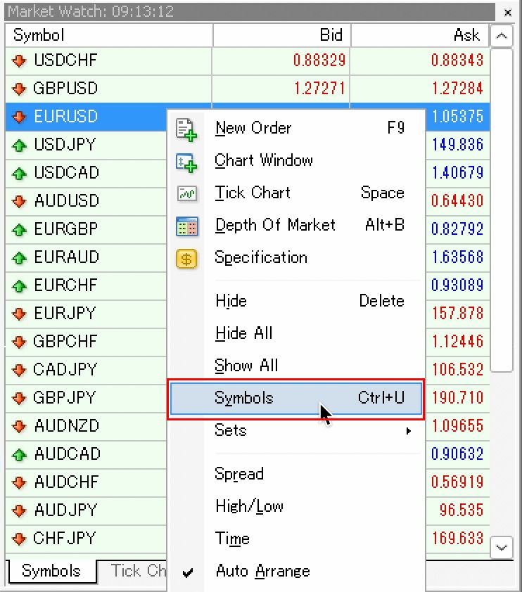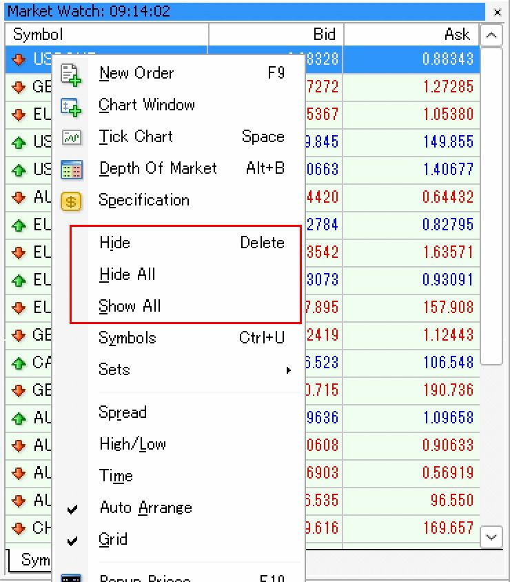 Symbols can be added or removed from the Market Watch as needed. Removing unnecessary symbols can also help reduce the load on your PC, so adjust accordingly.