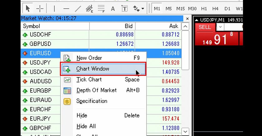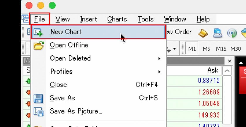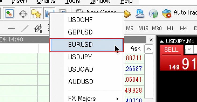 There are numerous ways to open a new chart in MT4. Here, we will introduce four typical methods.