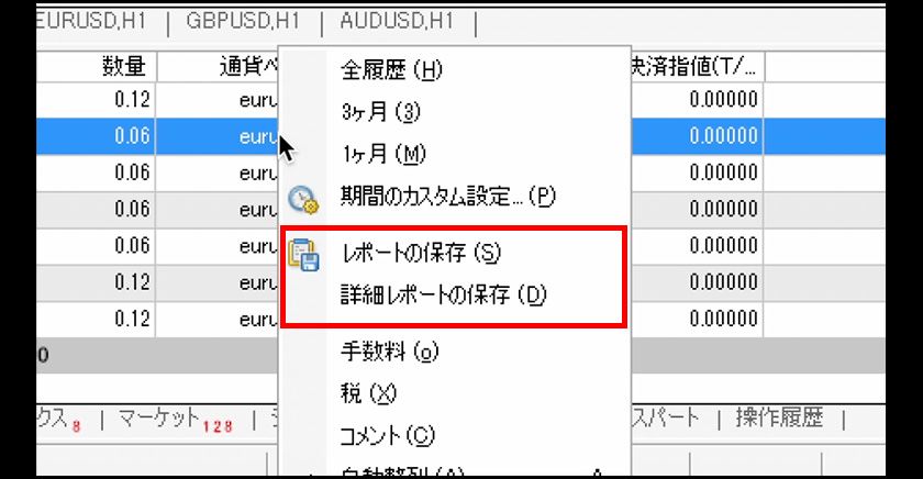 *You can specify the report period by right-clicking in the "Account History" tab and selecting "All History," "Last 3 Months," "Last Month," or "Custom Period" from the menu.