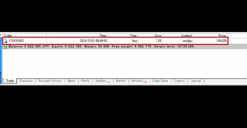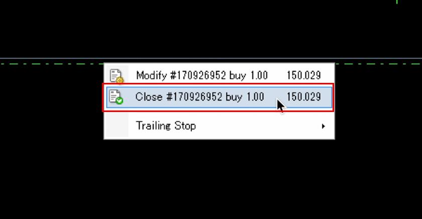 Right-click on the position you want to close within the 'Trade Tab' of the Terminal and select 'Close Order', which will display it.