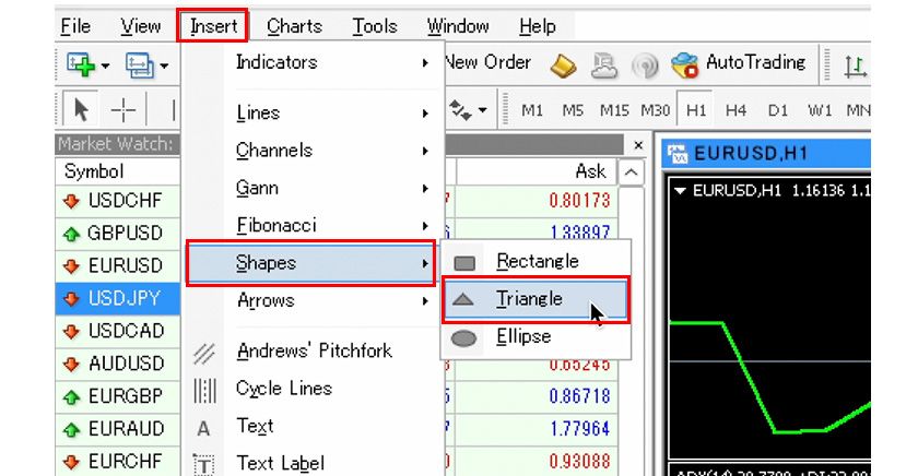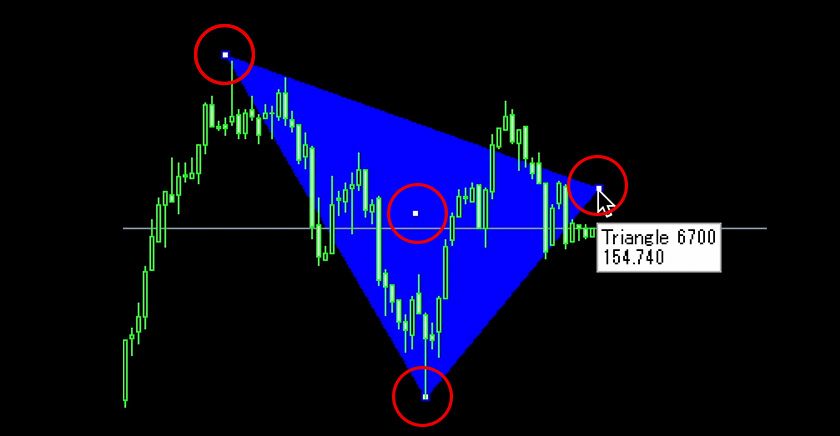 The cursor will switch to triangle drawing mode. Click three points on the chart to create a triangle.