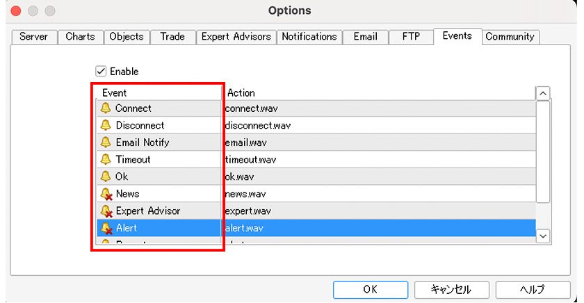 In MT4, sounds are played when logging in or executing trades. These sounds can be freely customized in the settings.