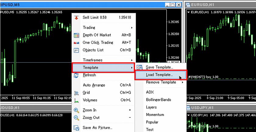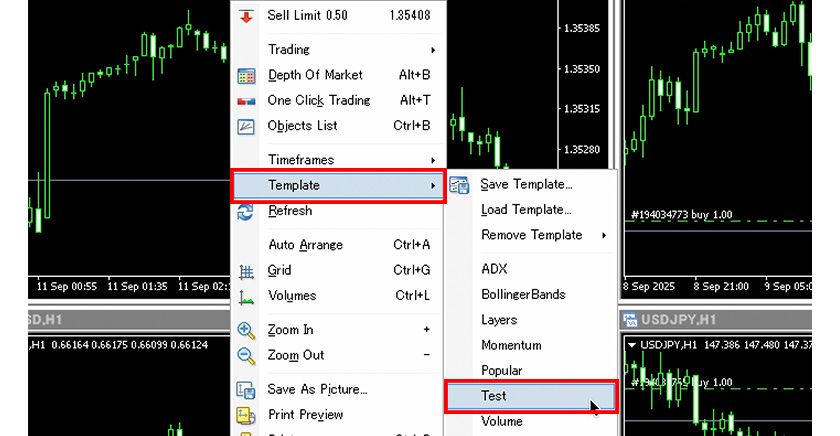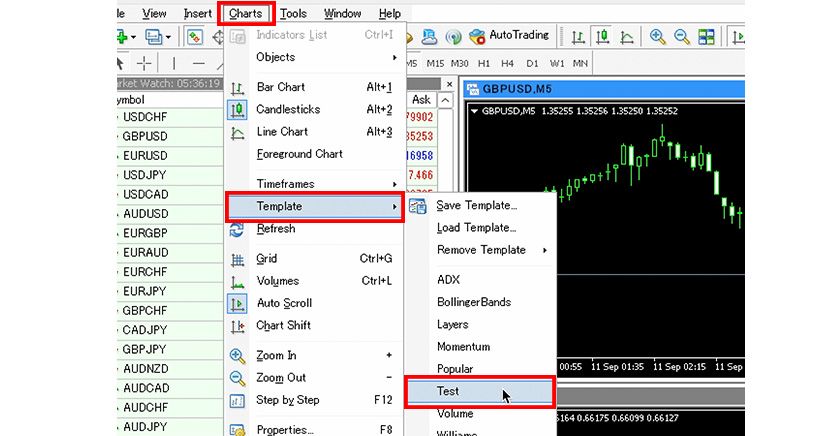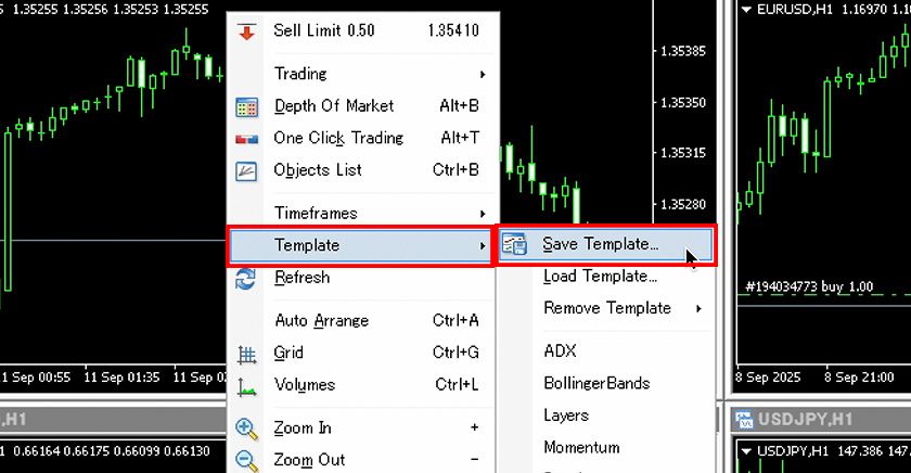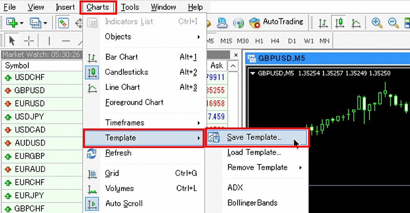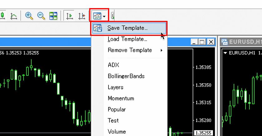 In MT4 charts, you can save the settings such as chart colors and indicators as a "template chart" and apply them to other charts. Here, we will guide you on how to use this template chart feature.