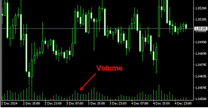 In MT4 charts, tick volume is by default displayed at the bottom of the chart.