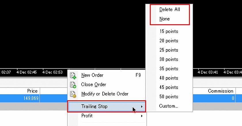 When using the MT4 trailing stop, please note the following points. Use this feature after understanding how it works: