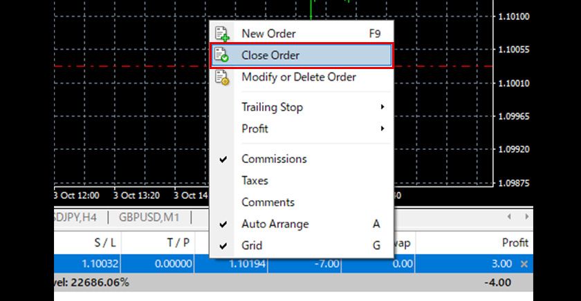 In MT4, you can perform market closings at any time during trading hours. The method of closing depends on whether one-click trading is enabled.