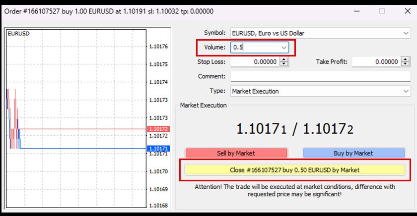 In MT4, you can also partially close open positions. This is mainly done from the Terminal.