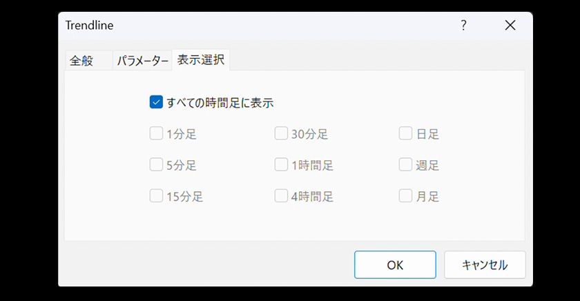 Check "Show on all timeframes" to display the line on all timeframes. Uncheck it to select specific timeframes for displaying the line.