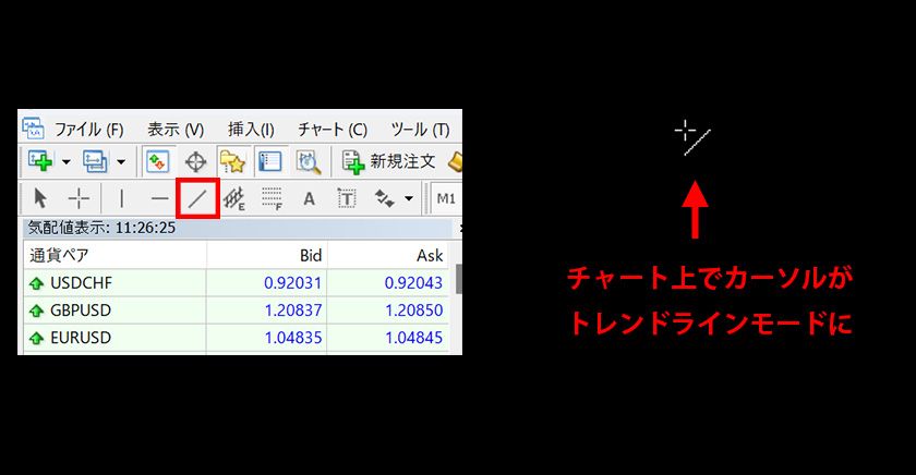In MT4, you can draw trendlines anywhere on the chart. Here, we explain the basic methods for drawing, modifying, and customizing trendlines.
