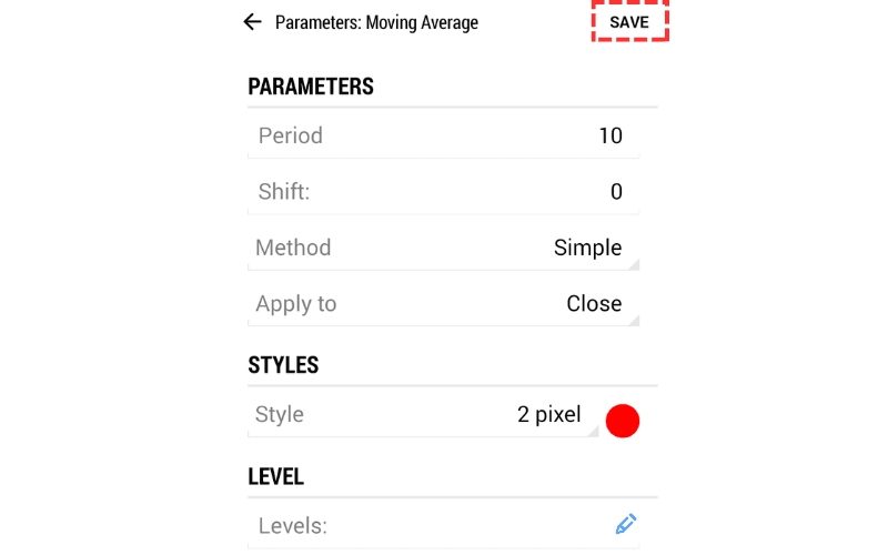 Set the parameters and tap 'Done' at the top right to display the indicator.
