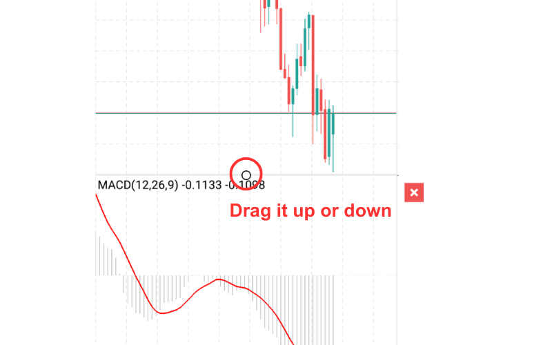 A small circle will appear on the boundary line between the main and indicator windows. Drag it up or down to adjust the display areas.
