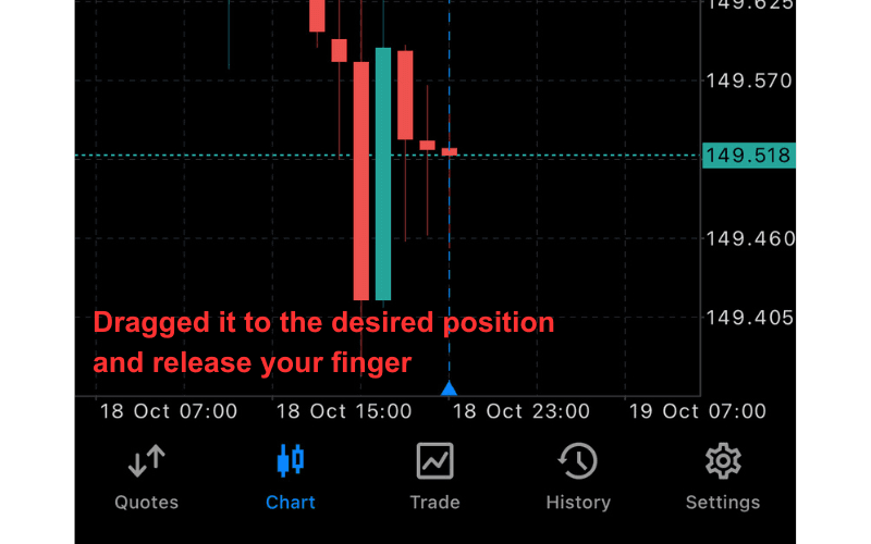 When analyzing charts on MT5 for iOS, you can create a custom-sized space on the right side of the chart if needed.